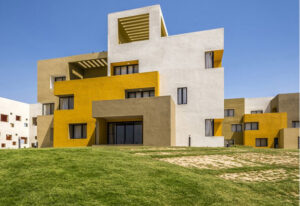 A 100 acre development with 7 storeyed residential buildings, villas, school, temple, club, bachelors hostel, studio apartments & hospital